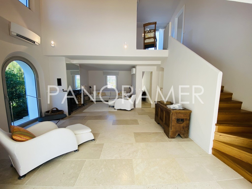 Villa de prestige à vendre à Saint-Tropez, avec vue mer et sur le village, à seulement 700m de la Place des Lices, cette bastide de charme provençale orientée plein sud est située dans un secteur calme et sans vis-à-vis. Entièrement rénovée, la bâtisse principale est composée d’une cuisine indépendante, un salon avec salle à manger sous terrasse véranda, très lumineuse, une chambre avec salle d’eau en rez de chaussée. A l’étage, une chambre de maître avec terrasse privative offrant une superbe vue mer et village, une salle de bain avec dressing et une chambre annexe ou bureau.